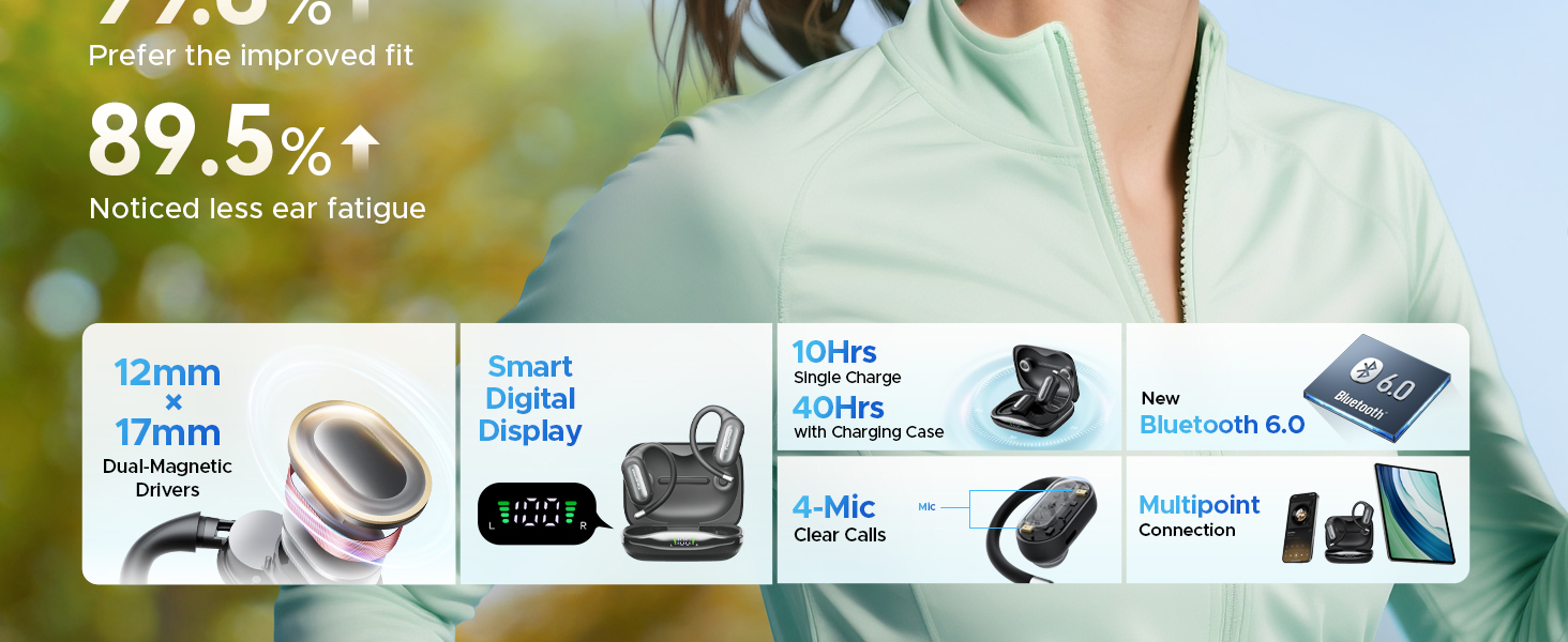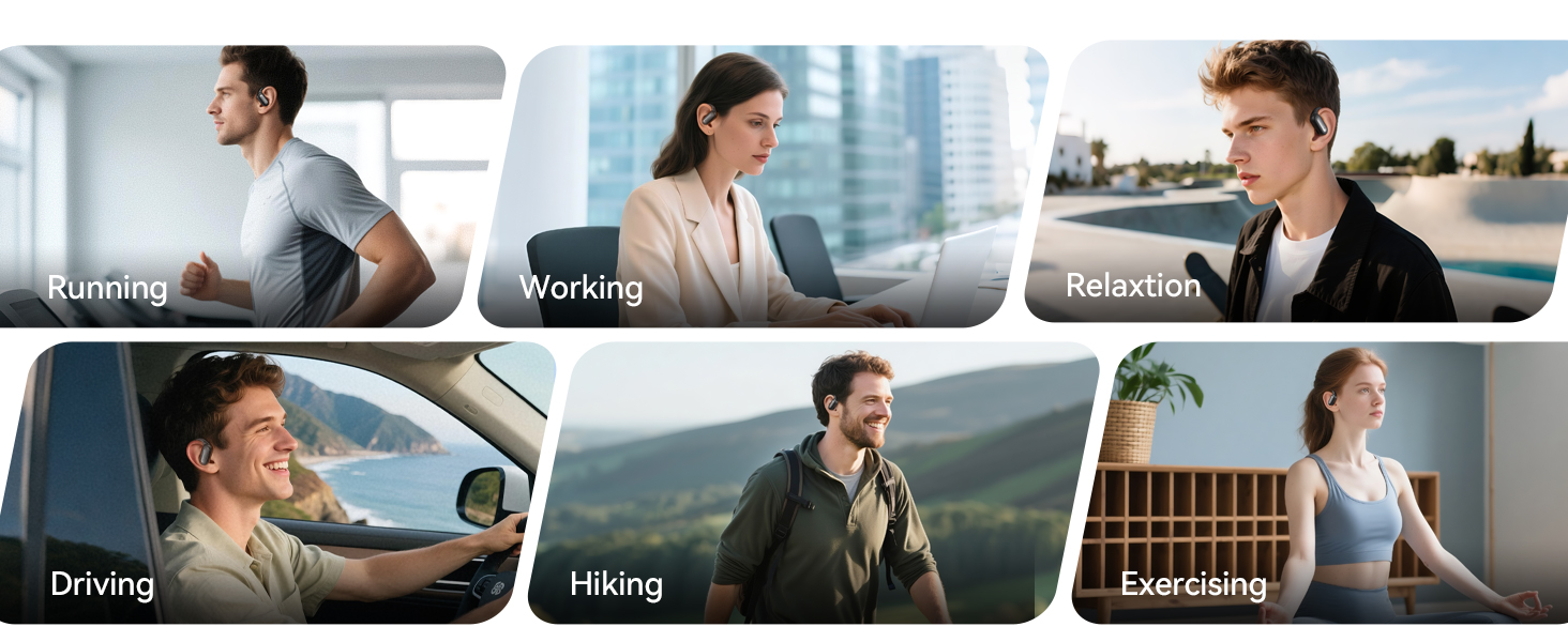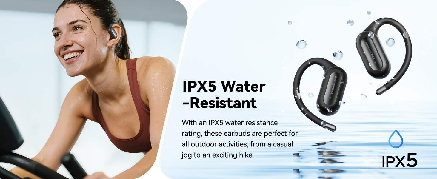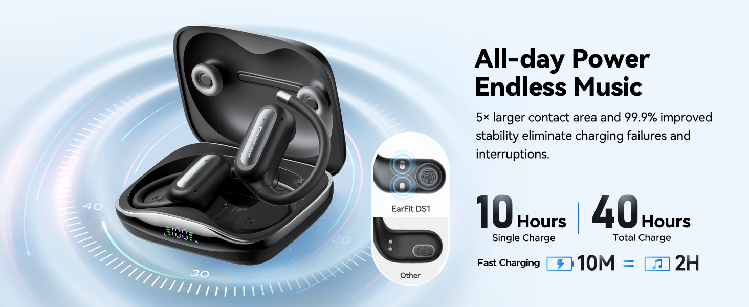 [Sports-Ready Fit with Open-Ear Awareness] - Built for active use, the DS1 earbuds feature secure over-ear hooks and IPX5 water resistance for sweat and splash protection. The open-ear design keeps you aware of your surroundings for safer, more social workouts.