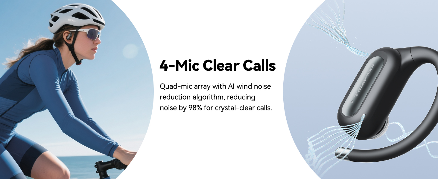 Truefree DS1 Open-Ear Headphones, Bluetooth 6.0 Wireless Earbuds with Ear Hooks, Spatial Sound, 4 Mics Clear Calls, 40H Playtime, Fast Charging, Multipoint Connection, IPX5-Rated for Sports, Snug Fit
