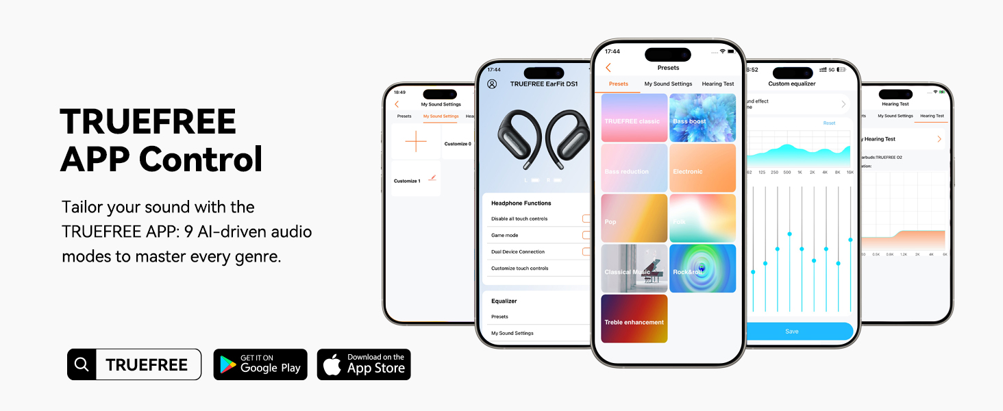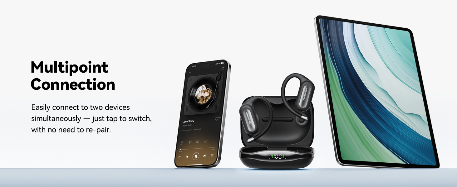 [Dual Device Connection & App Control] - Multipoint connection lets you pair with two devices simultaneously and switch between them effortlessly. Download the Truefree App to unlock deeper control, adjust EQ presets, personalize sound effects, and fine-tune your audio to match your preferences.